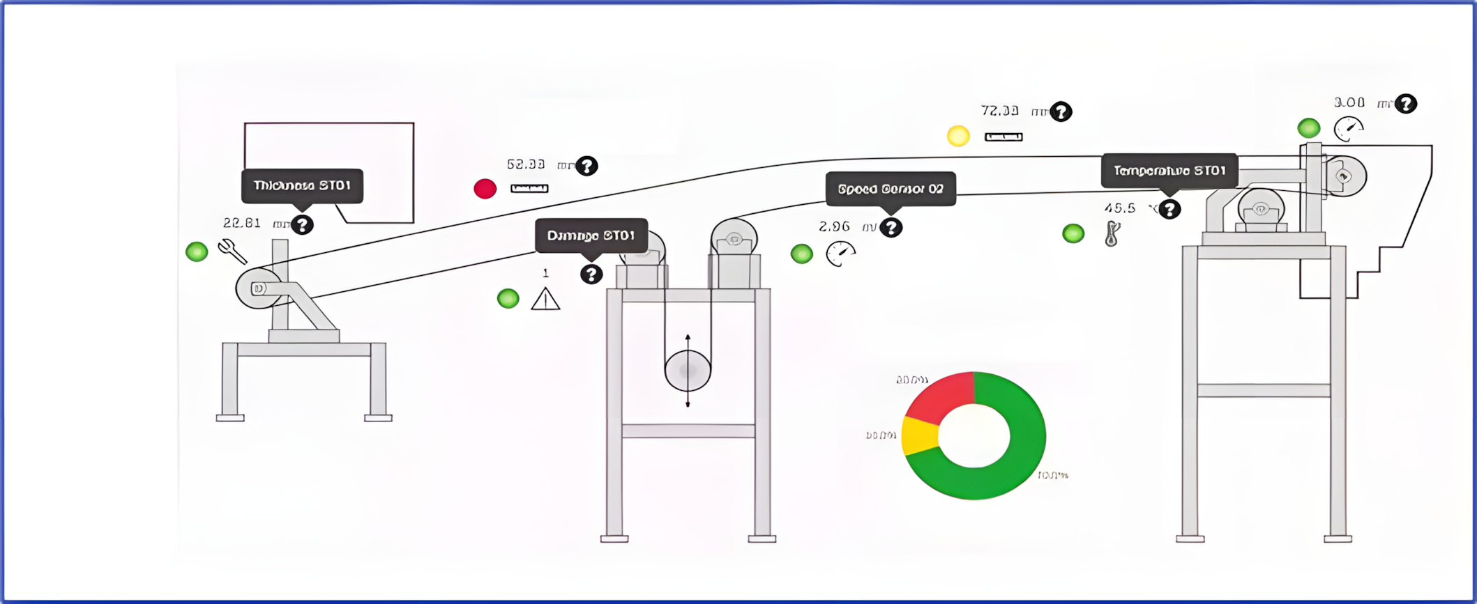回程膠帶跑偏檢測(cè)和保護(hù) 在膠帶回程驅(qū)動(dòng)站、張緊間等膠帶改向位置安裝回程膠帶跑偏檢測(cè)裝置,使跑偏信號(hào)信號(hào)數(shù)字化 ,配置電動(dòng)糾偏裝置 數(shù)據(jù)融合應(yīng)用 通過(guò)數(shù)字化技術(shù)應(yīng)用,提前預(yù)測(cè)膠帶機(jī)狀態(tài),避免意外停機(jī),改善傳送帶的可靠性和使用壽命。 |